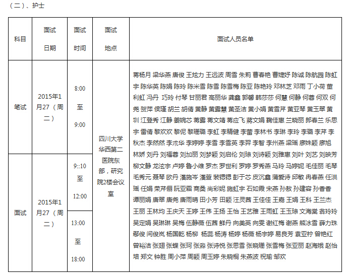 四川大学华西第二医院2015级规范化培训面试,于近期在四川大学华西第二医院进行。具体通知如下:
