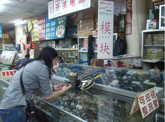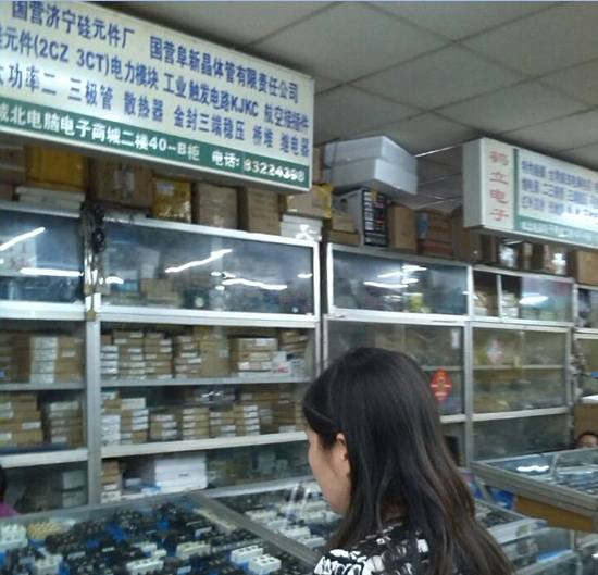 城隍庙电子、电器市场是西部最大的电子、电器批发集市,市场紧临成都市府河的滨河路,除了经营电器的家电商铺外,亦有经营各类工具、仪表的商铺,还有经营各类电子零部件的批发商及代理,为学校学生进行电子装接训练开发的电子小产品套件也比比皆是。本次调研的重点是寻找电力电子技术课程中可供学生组装并调试的具有整流、逆变、调压等功能套件,因此老师们找到各个经营可控硅的摊位,查看电力电子器件,向批发商咨询并了解电力电子器件在市场中使用情况,并记录了一些触发模块的型号、晶闸管型号及IGBT的型号。