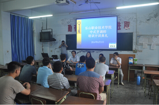 2014年6月3日上午九点,由乐山市市中区民政局主办,l乐山职业技术学院旅游系承办的“乐山市市中区民政局2014年退伍士兵职业技能(中式烹调师)培训开训典礼”在旅游系2楼多媒体教室顺利举行。