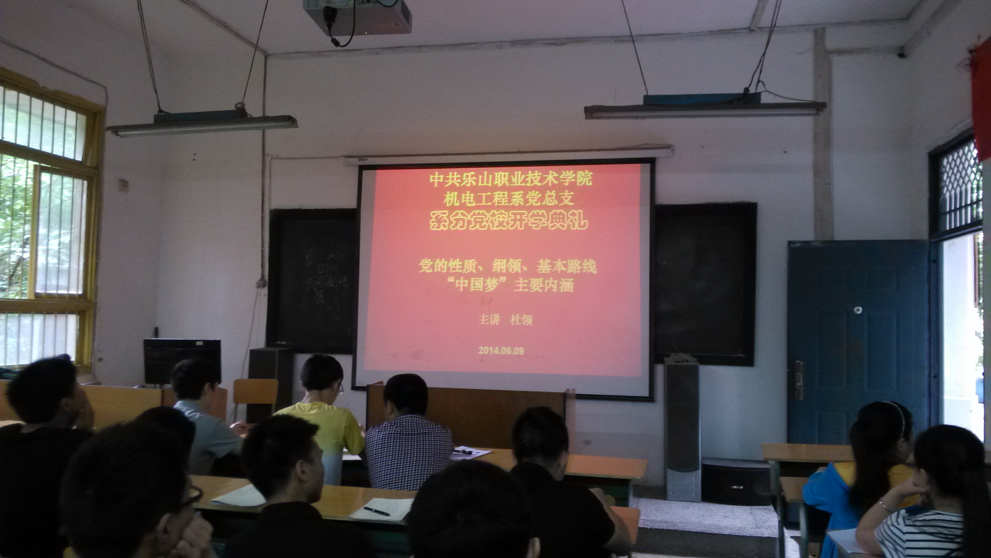 6月9日下午2点,中共乐山职业技术学院机电工程系第22期分党校开班典礼在城北校区1-2多媒体教室举行,系党总支书记杜领出了开班典礼并作了重要讲话,大会由向敏主持。